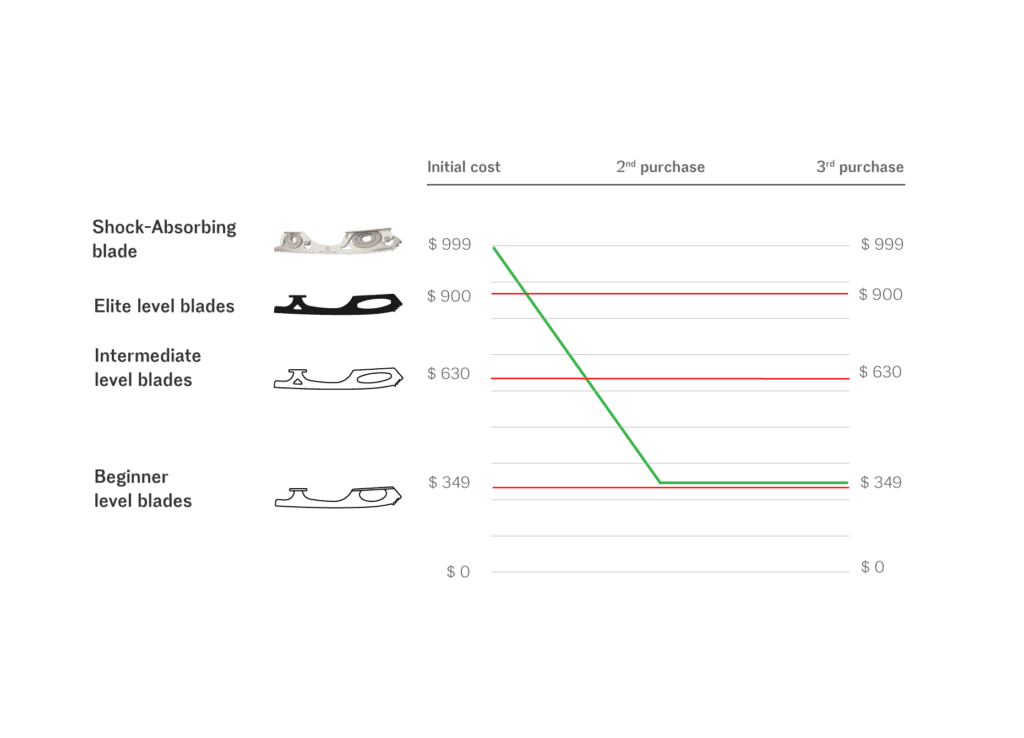 The shock absorbers reduces landing impact by 15%, helping prevent injuries and ensuring a longer, more successful skating journey. Skaters can reduce over 450,000 kg of impact load per year with our Shock Absorbing Blade—impact that would otherwise be absorbed by their bodies.